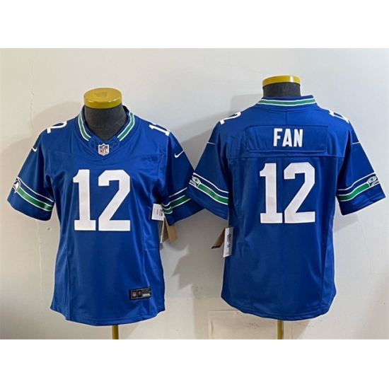 Youth Seattle Seahawks #12 Fan Royal 2024 F.U.S.E Throwback Vapor Limited Stitched Football Jersey