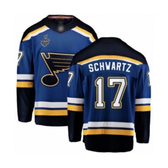 >Youth St. Louis Blues #17 Jaden Schwartz Fanatics Branded Royal Blue Home Breakaway 2019 Stanley Cup Final Bound Hockey Jersey