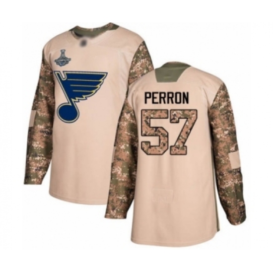 Women's St. Louis Blues #57 David Perron Authentic Camo Veterans Day Practice 2019 Stanley Cup Final Bound Hockey Jersey