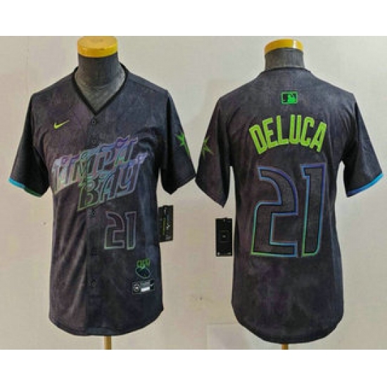 Youth Tampa Bay Rays #21 Jonny DeLuca Number Charcoal 2024 City Connect Limited Stitched Jersey