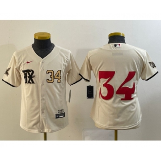 Youth Texas Rangers #34 Nolan Ryan Number Cream 2023 City Connect Stitched Baseball Jersey