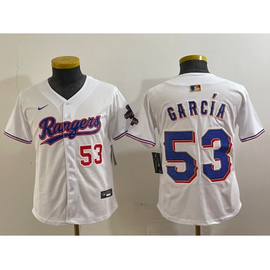 Youth Texas Rangers #53 Adolis Garcia Number White 2024 Gold Collection Limited Cool Base Jerseys