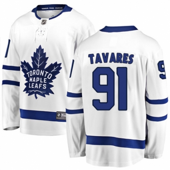 Youth Toronto Maple Leafs #91 John Tavares Authentic White Away Fanatics Branded Breakaway NHL Jersey