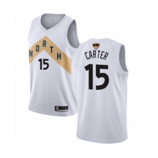 >Youth Toronto Raptors #15 Vince Carter Swingman White 2019 Basketball Finals Bound Jersey - City Edition