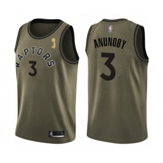 >Youth Toronto Raptors #3 OG Anunoby Swingman Green Salute to Service 2019 Basketball Finals Champions Jersey