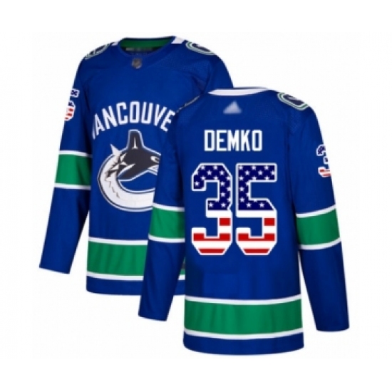 >Youth Vancouver Canucks #35 Thatcher Demko Authentic Blue USA Flag Fashion Hockey Jersey