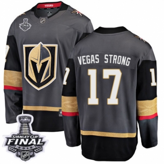 Men's Adidas Vegas Golden Knights #17 Vegas Strong Premier Gray Home 2018 Stanley Cup Final NHL Jersey