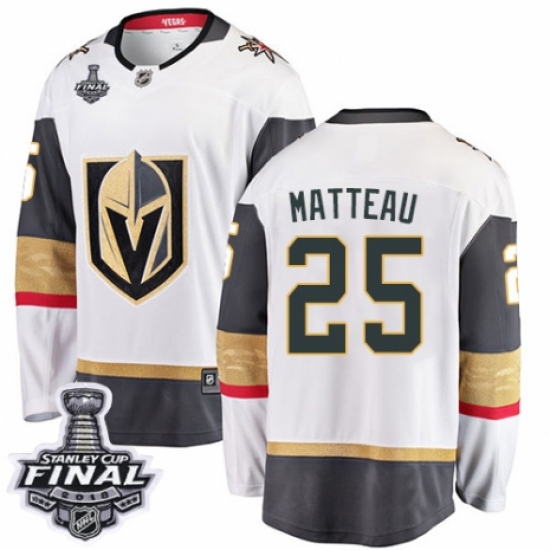 >Youth Vegas Golden Knights #25 Stefan Matteau Authentic White Away Fanatics Branded Breakaway 2018 Stanley Cup Final NHL Jersey