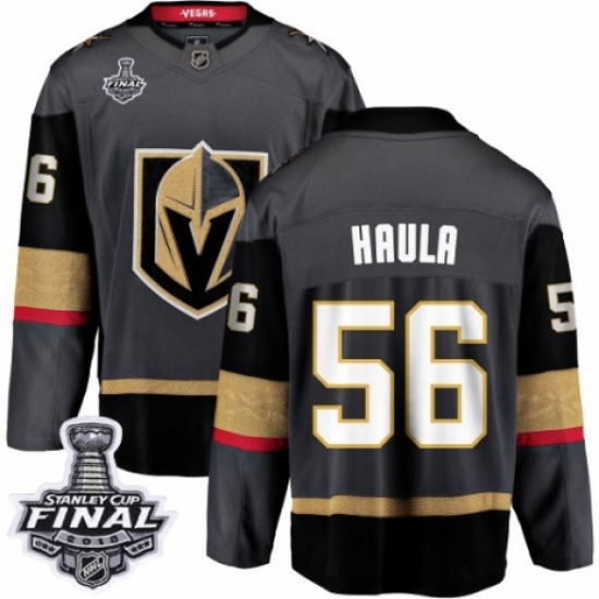 >Youth Vegas Golden Knights #56 Erik Haula Authentic Black Home Fanatics Branded Breakaway 2018 Stanley Cup Final NHL Jersey