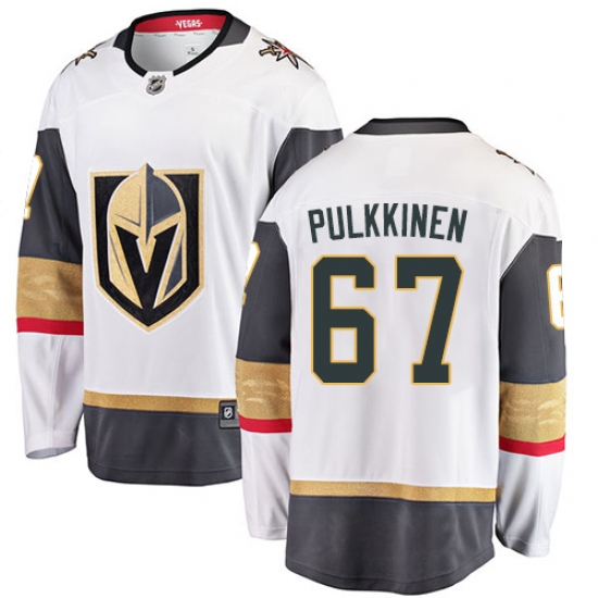 Home>NHL>Vegas Golden Knights>Teemu Pulkkinen>Youth Vegas Golden Knights #67 Teemu Pulkkinen Authentic White Away Fanatics Branded Breakaway NHL Jersey