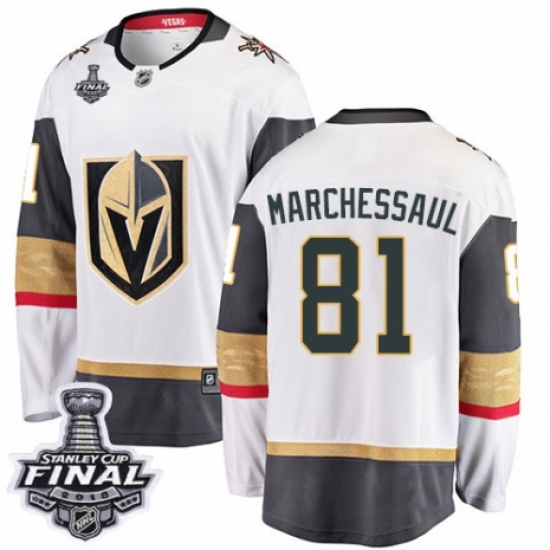 Youth Vegas Golden Knights #81 Jonathan Marchessault Authentic White Away Fanatics Branded Breakaway 2018 Stanley Cup Final NHL Jersey