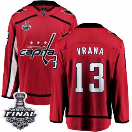 Youth Washington Capitals #13 Jakub Vrana Fanatics Branded Red Home Breakaway 2018 Stanley Cup Final NHL Jersey