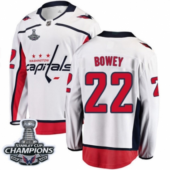 Men's Washington Capitals #22 Madison Bowey Fanatics Branded White Away Breakaway 2018 Stanley Cup Final NHL Jersey