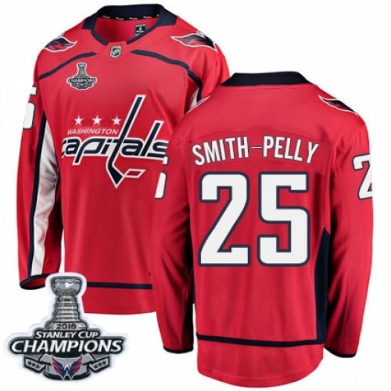Youth Washington Capitals #25 Devante Smith-Pelly Fanatics Branded Red Home Breakaway 2018 Stanley Cup Final Champions NHL Jersey