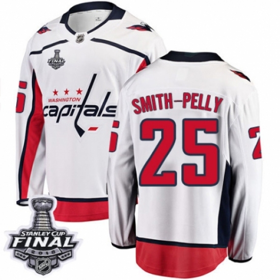 Youth Washington Capitals #25 Devante Smith-Pelly Fanatics Branded White Away Breakaway 2018 Stanley Cup Final NHL Jersey