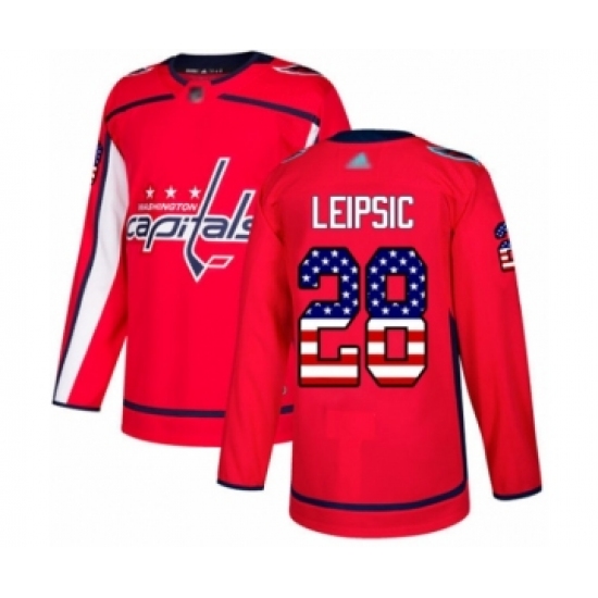 >Youth Washington Capitals #28 Brendan Leipsic Authentic Red USA Flag Fashion Hockey Jersey