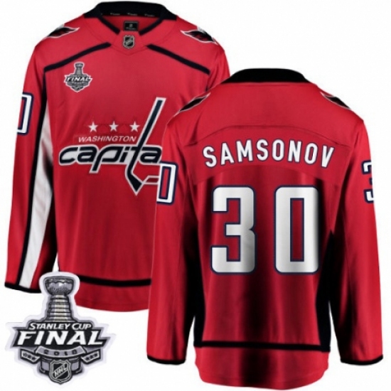 >Youth Washington Capitals #30 Ilya Samsonov Fanatics Branded Red Home Breakaway 2018 Stanley Cup Final NHL Jersey