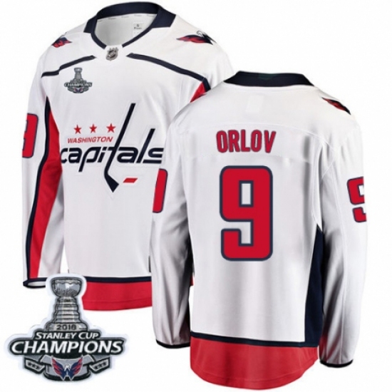 Youth Washington Capitals #9 Dmitry Orlov Fanatics Branded White Away Breakaway 2018 Stanley Cup Final Champions NHL Jersey