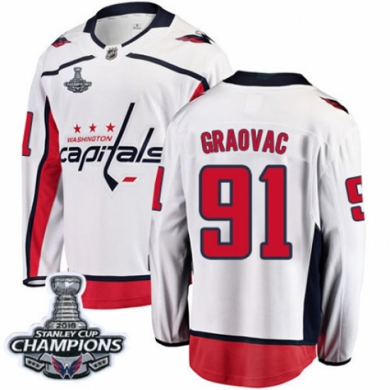 Men's Washington Capitals #91 Tyler Graovac Fanatics Branded White Away Breakaway 2018 Stanley Cup Final NHL Jersey
