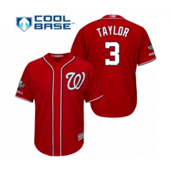 Youth Washington Nationals #3 Michael Taylor Authentic Red Alternate 1 Cool Base 2019 World Series Champions Baseball Jersey