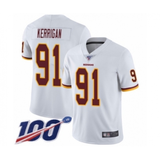 >Youth Washington Redskins #91 Ryan Kerrigan White Vapor Untouchable Limited Player 100th Season Football Jersey