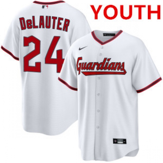 Youth cleveland guardians #24 chase delauter white cool base limited stitched baseball jersey