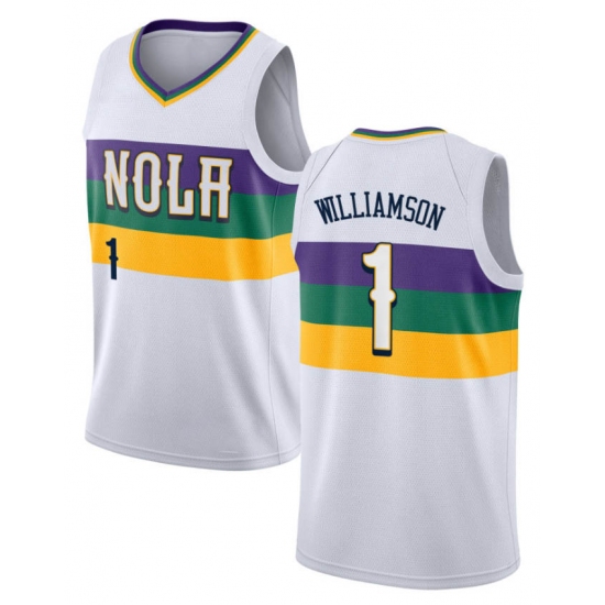 Men's Nike New Orleans Pelicans #1 Zion Williamson White NBA Swingman Earned Edition Jersey