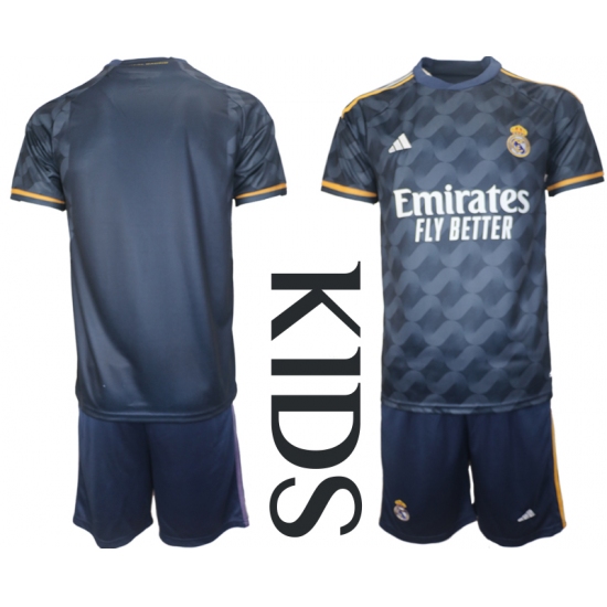 kids Real Madrid Blank 2023-24 Navy Away Soccer Jersey